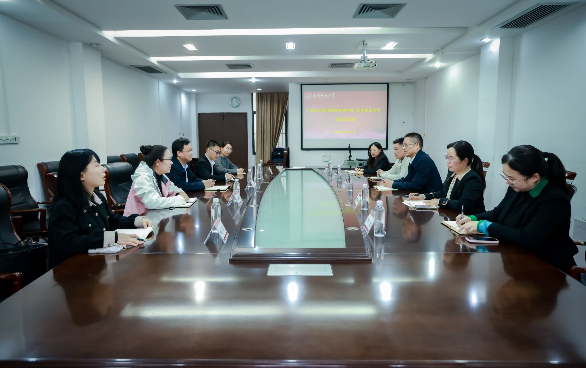 12月11日下午,广西幼儿师范高等专科学校党委宣传部部长刘启强、副部长卢文忠一行5人到我校党委宣传部开展调研交流。我校党委宣传部部长纪明、副部长李树玲及部门相关人员参加座谈。